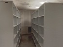 Размеры и расположение стационарных стеллажей адаптировано под сложную геометрию помещения.