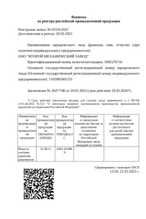 Мы рады сообщить, что получили выписку из реестра Минпромторга. Вся наша продукция Российского производства.
